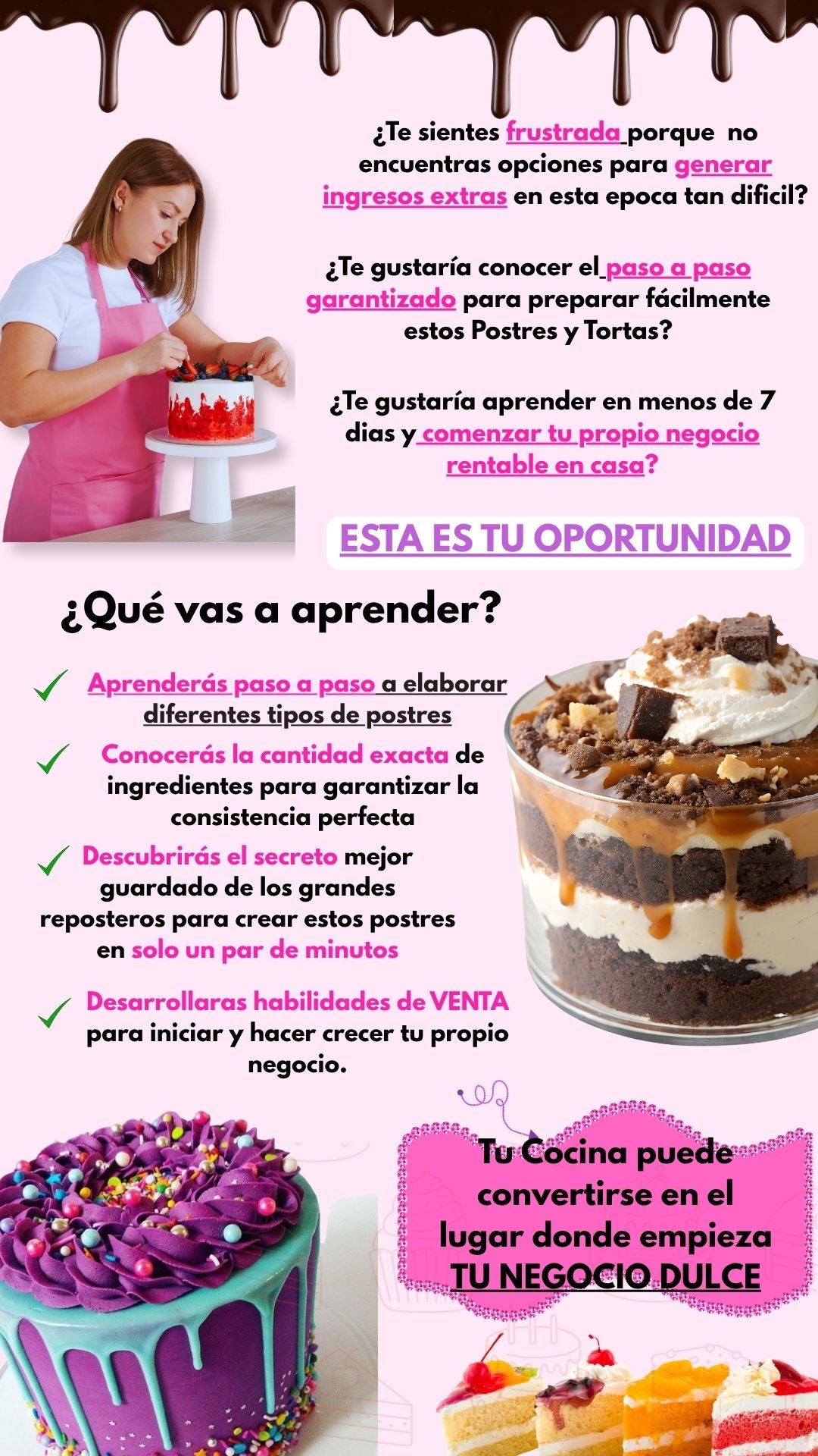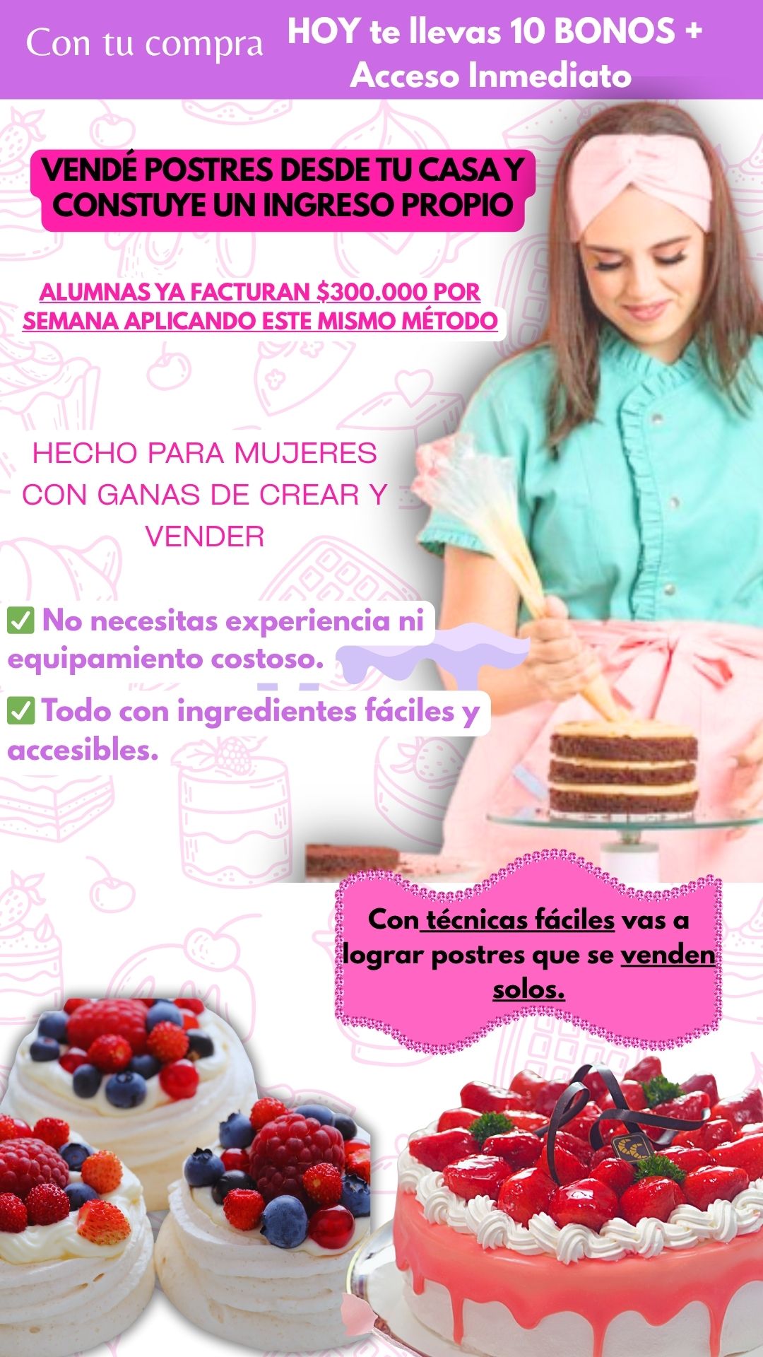 Sí, está diseñado no solo para que aprendas repostería, sino para que veas cómo transformar lo que cocinas en un negocio rentable desde casa, con estrategias prácticas para empezar a vender.